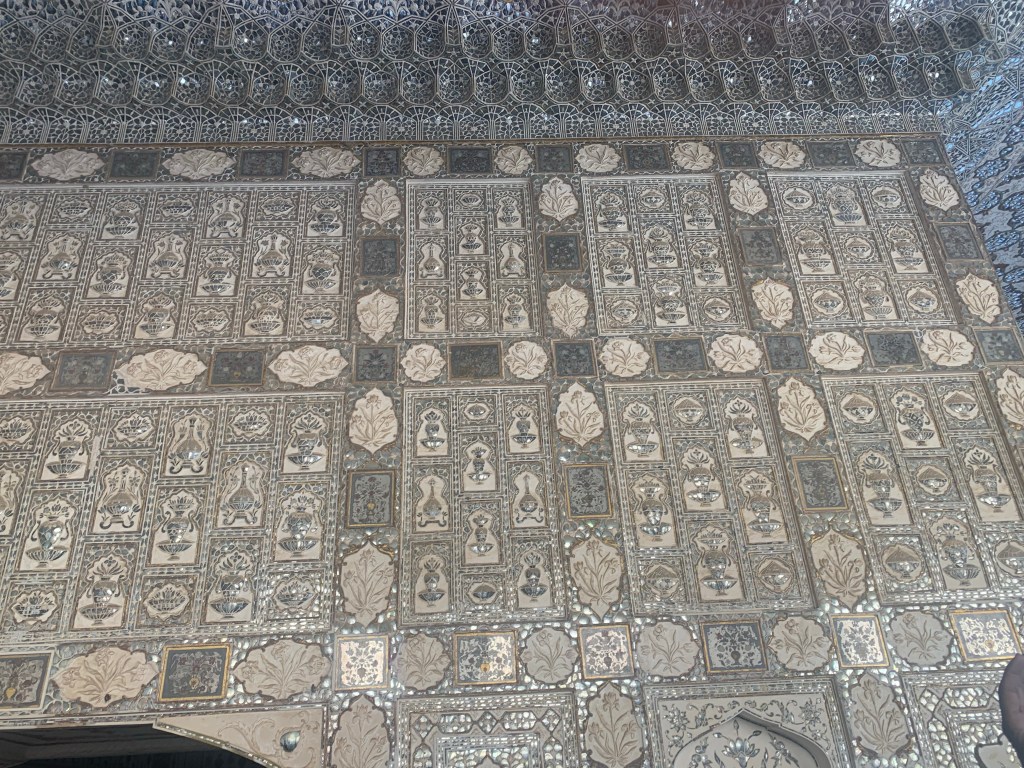 As for how business is done in a place whose economy is run by tourism, is very interesting. There is a network of agents that look for cars with non Rajasthan numbers. They lure tourists to crafts and local showrooms with a package of e-autos that will save them from the pains of traveling in tourists’ personal cars and pains of parking for a low price. They will then take you to local showroom where the tourists are shown a variety of things from clothing to handicrafts to marble work etc. This is how we ended up shopping in the day. The e-auto then offers the best places to eat, because he has his own network with the local restaurants. So we ended up eating a nice vegetarian meal at a restaurant. After going to Jantar Mantar we then drove another hour to see Sheesh Mahal.